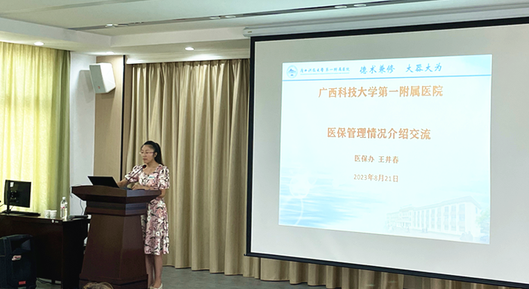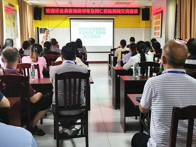 2023年8月21日,乐业县医疗保障局主办的乐业县2023年深化医疗保障改革工作专题培训班来我院交流座谈,共同对医疗保障改革工作、医保管理工作、DRG运营工作等进行探讨交流,交流方式主要以座谈及现场交流为主要形式。