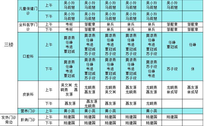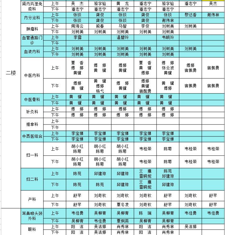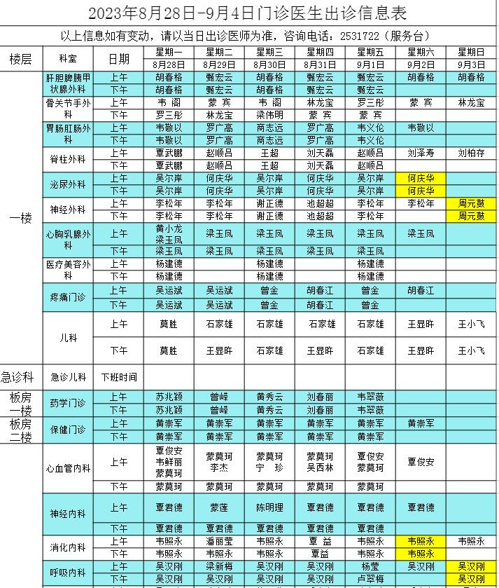 2023年8月28日-9月3日门诊医生出诊信息表