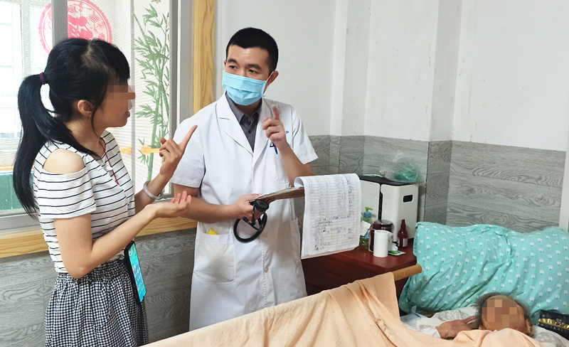 近日,我院全科医学科主任韦彬副主任医师带领团队到社区居家养老服务中心对老人进行访视,并回访数位曾在我院住院治疗的患者,其中一位是曾在全科医学科住院治疗后好转出院的曾奶奶(化名),曾奶奶是一名多病共患的患者,同时患有“高血压、冠心病”,又 因长期卧床,抵抗力弱,出现“肺炎”,经韦主任详细检查,了解目前健康状况后,对曾奶奶后续的用药及护理注意事项做出了指导。