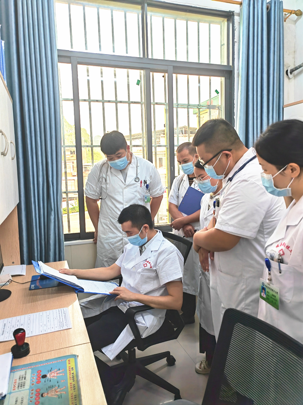 韦彬主任与卫生院医生讨论病情
