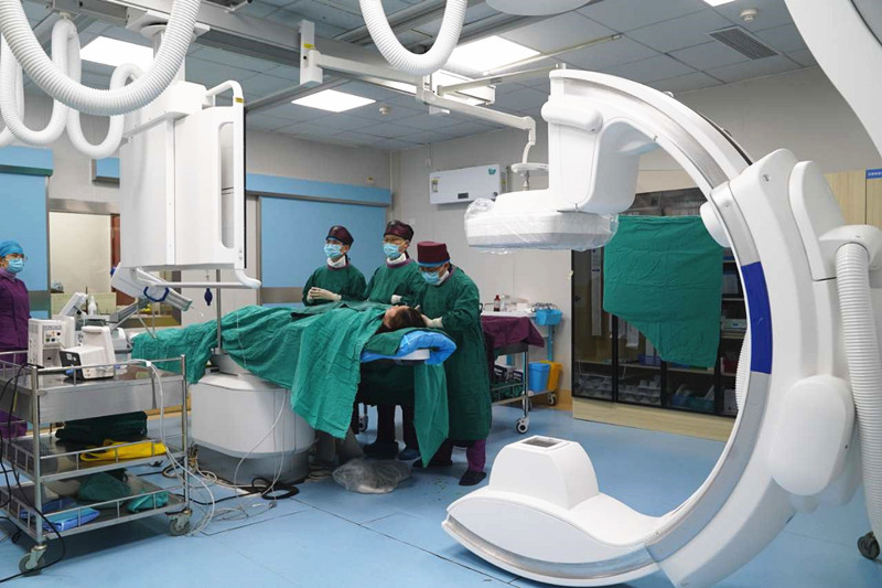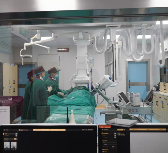 6月28日,忻城县69岁的蒙师傅突发脑梗昏迷,病情危重,当地医院立即联系作为医联体上级医院的广西科技大学第一附属医院进行转诊。对急性脑梗死患者来说,时间就是生命,医护人员分秒必争。我院卒中中心迅速开通绿色通道,神经内科等相关科室医生已在急诊科就位,患者下午4点送到之后,立即完善多模CT检查,显示患者有大面积脑缺血半暗带,需立刻实施介入取栓手术。导管室内医生进行紧张的介入手术治疗,发现患者颅内最重要的基底动脉有血栓,如果不立刻开通闭塞血管,就会有死亡的风险。这个手术风险极高,患者容易出现血压、心率波动,甚至呼吸心跳骤停等,需要医生有熟练的介入手术操作。神经内科联动急诊科、神经内科、导管室、麻醉科、重症医学科等多学科,尽全力救治患者。经过紧急救治,患者血流回复,成功开通“生命通道”。术后,将患者送回卒中中心监护病房继续治疗,意识转为清醒,恢复良好。