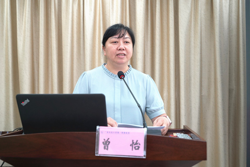 右江民族医学院研究生学院院长曾怡博士讲话。她首先简单介绍了右江民族医学院的历史和概况。她说,2023年右江民族医学院在广西科技大学第一附属医院设立同等学力课程教学点,两家单位的合作进入崭新阶段,今后将进一步加强校院联系,共同推进两家单位在研究生联合培养以及同等学力申请硕士学位工作中的合作交流,进而实现高层次人才的高质量培养。同时,她对学员提出三点要求:一要深刻领会学习目的。二要坚持终身学习。三要坚持学以致用。曾怡博士希望学员们能够珍惜宝贵的学习机会,明确学习目的,掌握学习技巧,不断提升自我,争取早日达到授予硕士学位的要求,获得硕士学位。