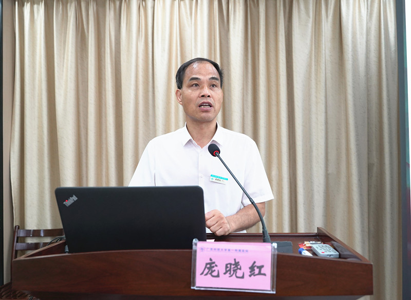 广西科技大学第一附属医院党委书记庞晓红作开班致辞。他首先感谢右江民族医学院对我院的信任和大力支持,在我院设立同等学力申硕课程柳州教学点,方便我院及柳州市区各兄弟医院在职人员对课程的学习。授予同等学力人员硕士学位是国家为同等学力人员开辟的获得学位的渠道,对在职人员业务素质提高和干部队伍建设都能起到积极作用。柳州教学点这个班有40名同学,来自柳州市9家医疗单位,希望同学们珍惜良好的学习机会,按学位授予的要求完成深造,提升自己的学位和职业素质。他代表医院党政领导班子提出三点要求: 一是医院要做好教学点的开课前准备工作,提前落实好教室、多媒体教学设备等,保障教学秩序正常;二是医院要做好教学点师生服务工作,保持沟通和联系。做好学生考勤管理工作;三是同学们要按课程学习要求,安排好工作,按时上课和参加考试。