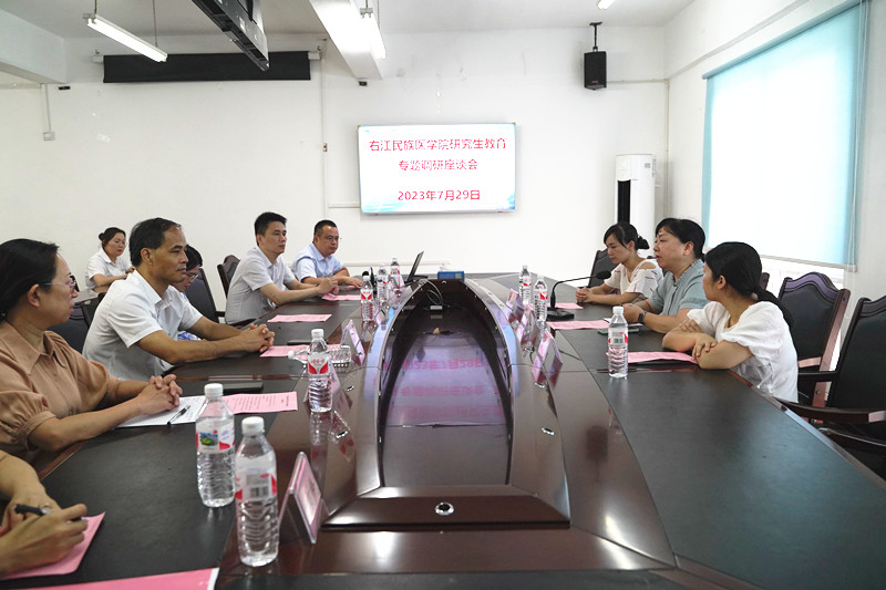 开班仪式结束后,曾怡院长、庞晓红书记等领导移步实验综合楼二楼会议室,就右江民族医学院研究生教育进行专题调研座谈会。