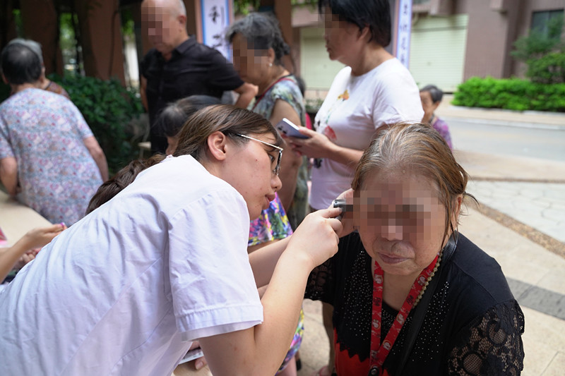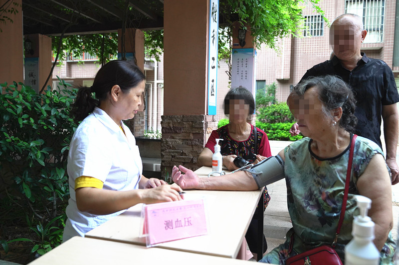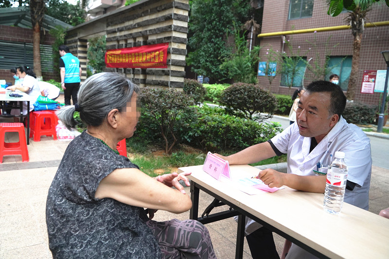 上午8点半,义诊活动正式开始。来自心血管内科、内分泌科、骨科、中医科、全科医学科、耳鼻咽喉头颈外科的多学科专家,联合医联体服务部为辖区的老年人开展健康科普及医疗义诊活动,耐心地解答老年朋友提出的疑难问题和心中困惑。“医生,你看我这个药吃得对吗?”一个70多岁的阿叔出示手机照片给医生看。来自全科医学科的韦欢医生仔细看了药品照片后回答道“阿叔,你这是降血压,现在一天吃几颗?感觉变好了还是有什么不舒服?我帮你检查看看。”另一边,来自内分泌科的黎达香正在给老年朋友测血糖,一边做一边给出专业意见。“阿姨,你餐后一小时的血糖有点高,少吃甜食,加强运动,实在不舒服还是要去医院做进一步检查。”