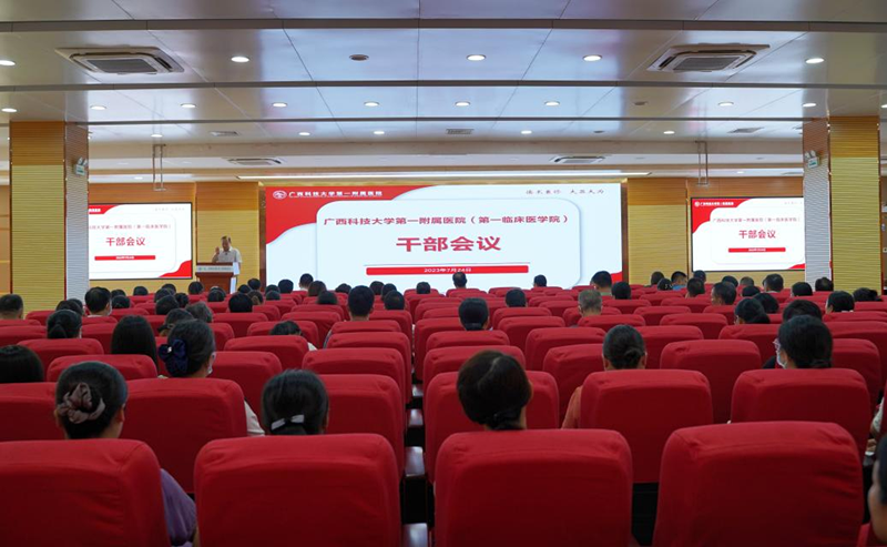 7月24日下午,广西科技大学第一附属医院(第一临床医学院)举行中层干部换届工作动员部署大会,对医院(学院)即将开展的中层干部换届调整工作进行部署和动员。党委书记庞晓红,党委副书记、院长覃天教授等院领导班子成员,以及全体党支部书记、中层干部、正高职称职工代表、正副护士长等参加了会议,党委副书记、院长覃天教授主持会议。