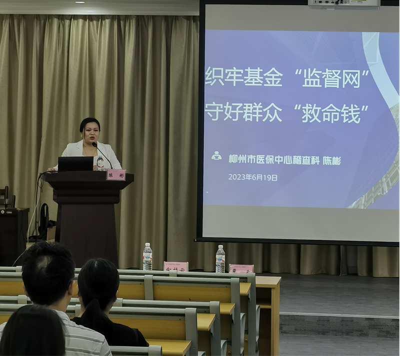 医疗保障基金是人民群众的“看病钱”“救命钱”,基金的使用安全涉及广大群众切身利益,关系医院的健康持续发展。为全面贯彻落实国家及广西壮族自治区2023年医保基金监管工作部署,结合清廉医院建设要求,深入理解《医疗保障基金使用监督管理条例》(以下简称《条例》)及《医疗保障基金飞行检查管理暂行办法》,规范医保基金合法合规使用,6月19日下午,广西科技大学第一附属医院在党员活动室举办医保基金监管专题培训会。培训会邀请柳州市医疗保障事业管理中心管理中心稽查科陈彬副科长进行授课,由院长助理黄进瑜主持。全院临床医生、护士(除值班外)、医技部门、医保基金监管科室人员约120人参会。