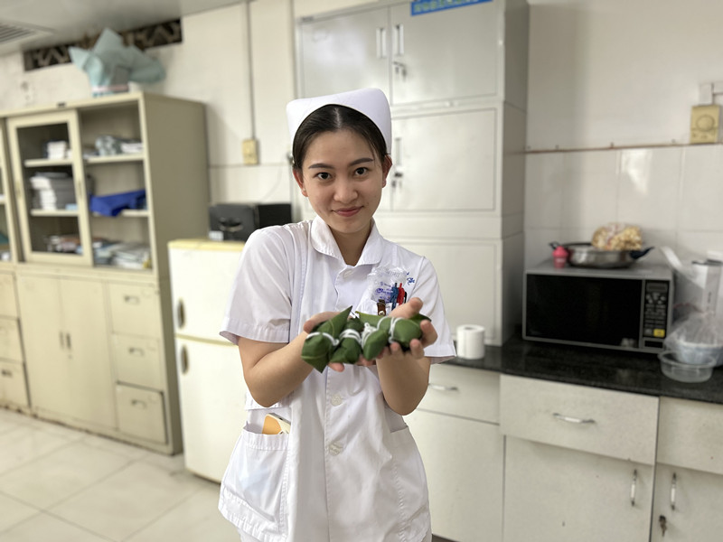 端午节当天,内分泌科张琰主任、龚俊副主任带领医护人员将美味的杂粮粽送到糖友手中,并认真指导了吃粽子的注意事项,糖友感慨:原来我们也可以吃粽子啦......