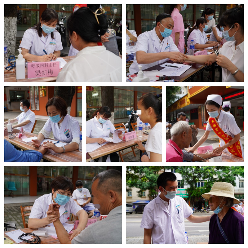 在举行签约仪式的同时,本院呼吸与危重症医学科主任梁新梅主任医师、麻醉科负责人曾金主任医师、康复医学科副主任毛珍芳副主任医师、全科医学科负责人韦彬副主任医师、中医科主任覃香副主任医师、产科专家韦如惠副主任医师与来宾市中西医结合医院的医护人员一道为过往来宾市民进行了义诊。
