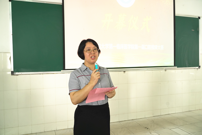 唐艳红主任为比赛致辞。唐艳红鼓励同学们:“认真学习,主动担当、积极作为,肩负起推广普及口腔健康基本知识和保障口腔健康的责任,通过日常志愿服务活动等多途径宣传口腔健康知识,帮助老百姓建立口腔预防保健意识,为实现健康中国贡献一份力量。”杨珍主任介绍了举办比赛的目的、意义和比赛相关事项。