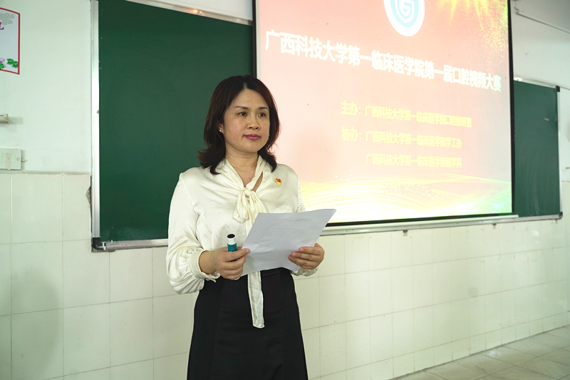 为进一步提升口腔医学生的学习积极性,丰富学习生活,拓展综合能力,增强团队协作精神,培养“一专多能”的实用型技术人才。6月2日上午,广西科技大学第一临床医学院第一届口腔视频科普大赛在箭盘教学点举行。学院学工办主任唐艳红、教学科负责人袁俊、口腔教研室主任杨珍及口腔教研组老师出席,口腔211班全体同学参加比赛。