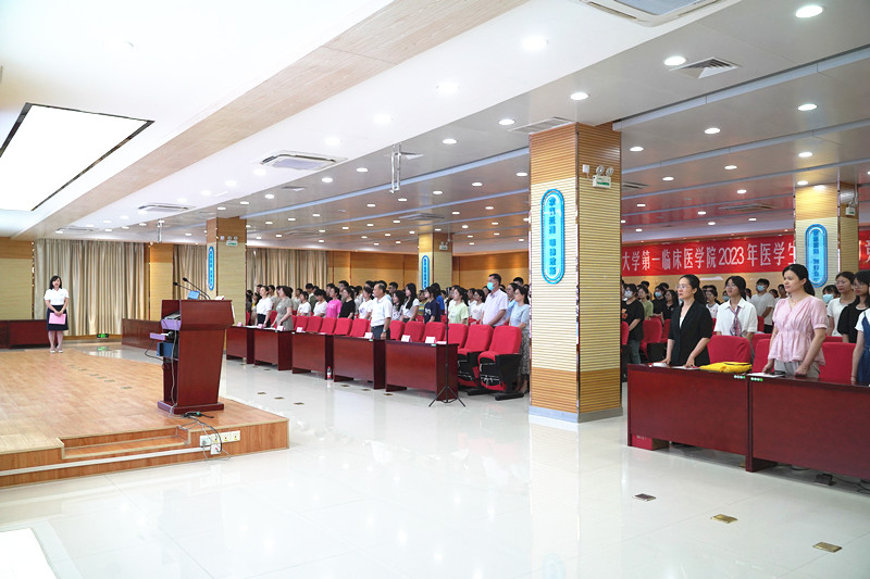 黄进瑜院长助理领读医学生誓言。“健康所系,性命相托。”铿锵有力的誓词时刻提醒着医学生们,要以救死扶伤为己任,不辞艰辛,执着追求,肩负起对祖国、对人民的承诺。