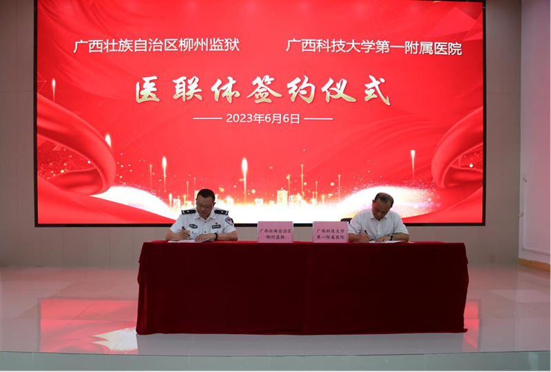 当天下午3时30分,柳州监狱党委书记、监狱长蒋安明、广西科技大学第一附属医院党委副书记、院长覃天教授代表双方单位签订紧密型医连体合作协议,这标志着本院与柳州监狱双方多年来合作迈出重要历史性步伐。