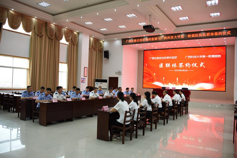 柳州监狱相关领导、组干科、办公室、狱政科、宣教科、生卫科,广西科大一附院医联体服务部、全科医学科、护理部等上述部门负责人共计30余人参加签约仪式。