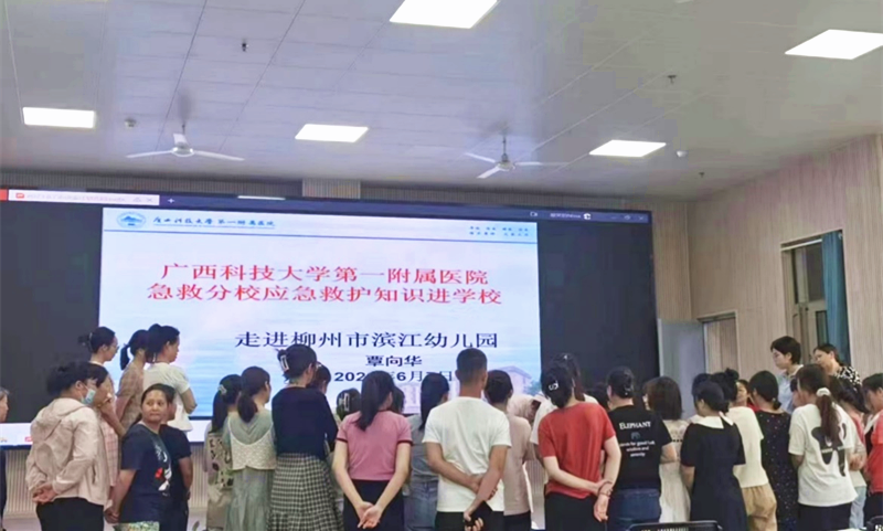 “教育要从娃娃抓起。”为了从小普及急救及心肺复苏知识,放射科覃向华护士于6月7日来到柳州市江滨幼儿园进行“应急救护知识进学校”科普活动。覃向华护士长的讲解生动形象、通俗易懂,园里的老师、孩子们聚精会神地听着,并围绕上来认真看心肺复苏示范,互动积极,学习氛围浓厚,获益匪浅。