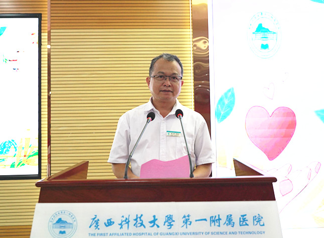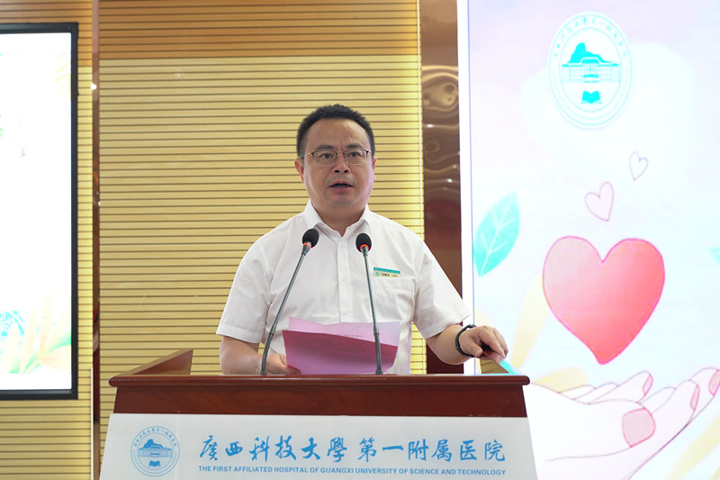 医院医务科科长吴东宣读无偿献血倡议书。仪式后,献血者们移步医院与广西血液中心共建的献血小屋进行无偿献血。