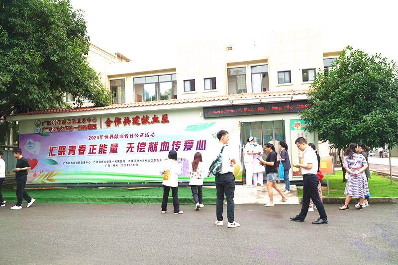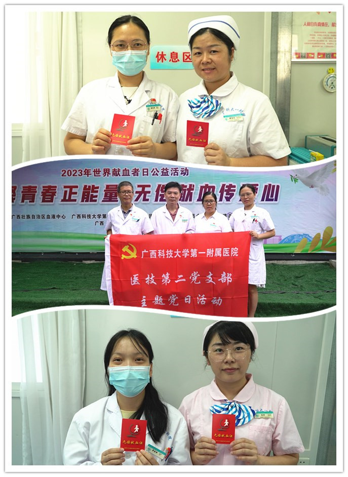2023年6月14日是第20个世界献血者日。根据国家卫生健康委办公厅、广西壮族自治区卫生健康委员会等相关文件精神,广西科技大学第一附属医院领导高度重视,联合广西壮族自治区血液中心、共青团柳州市柳北区委员会、柳长街道办事处,于2023年6月13日上午8:30在医院学术报告厅举行“汇聚青春正能量,无偿献血传爱心”的无偿献血活动仪式。活动特邀嘉宾广西血液中心主任韦少俊同志、柳州市柳北区委员会团委书记罗治才同志及柳长街道办事处负责同志出席。报名参加献血的医务人员、第一临床医学院学生以及柳北区社区居民无偿献血者共一百多人参加了本次活动。