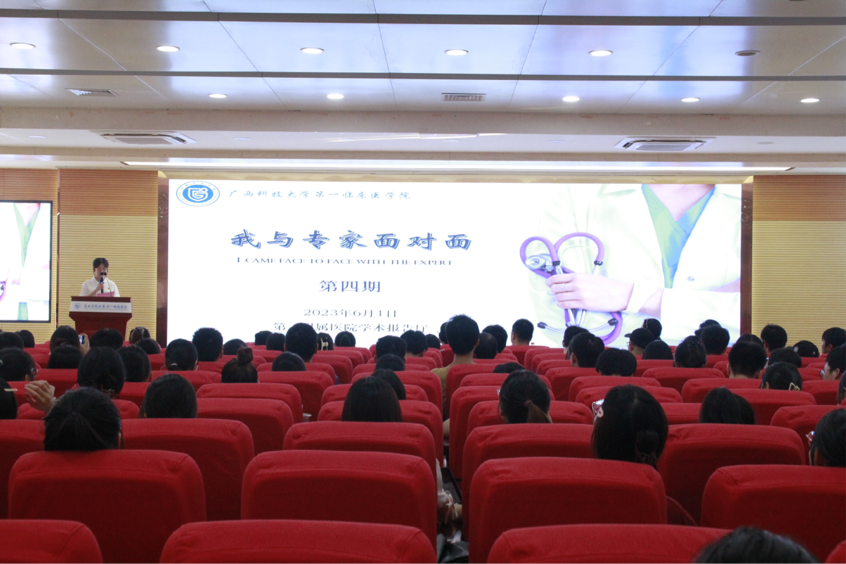 为培养临床医学生的临床思维能力,6月1日晚,广西科技大学第一临床医学院(第一附属医院)第四期“我与专家面对面”活动在学术报告厅顺利进行,邀请医学科学研究中心实验室主任、博士梁伟明作为本期主讲嘉宾。第一临床医学院学工办主任、团委书记出席活动,学院近200名师生参加。