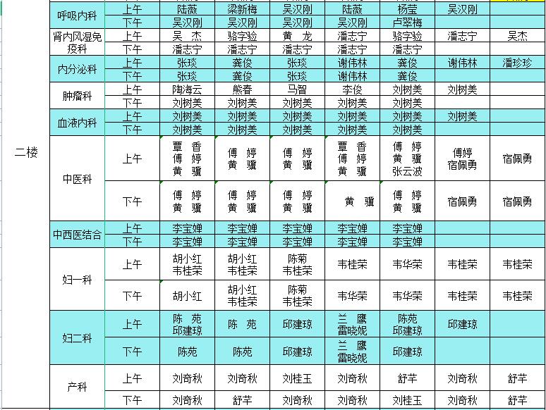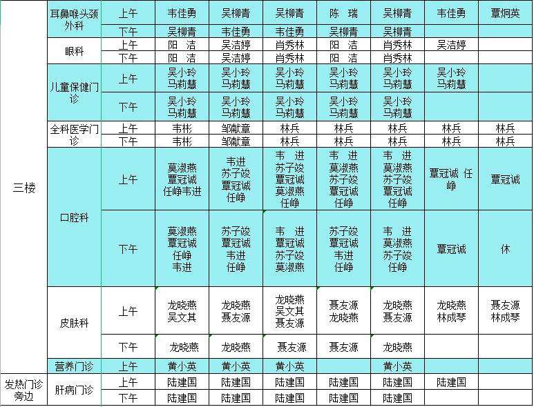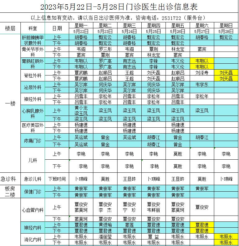 2023年5月22日-5月28日门诊医生出诊信息表
