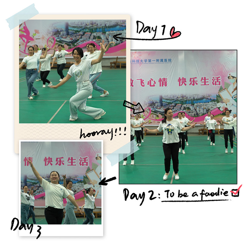 为展现护理人员的精神风貌和风彩,丰富文化生活,5月11日下午,护理部在医院球馆开展了“开心工作、快乐生活”为主题的运动与美食活动。活动中,护士们分为护士、护师、主管护师、高级职称和男护士五个组进行了热情四射的健身操展示,展现了新时代白衣天使们朝气蓬勃、积极向上的新风采。