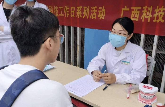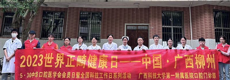 2023年5月15日是第7个世界正畸健康日,今年的主题是“正畸你和我,微笑共守护”。近日,广西科技大学第一附属医院口腔门诊部正畸科医护团队积极响应健康日的号召,在广西科技大学文昌校区及口腔门诊部举办了世界正畸健康日科普义诊活动,为广大群众尤其是年轻学子进行科普宣传及义诊咨询。活动现场吸引了许多年轻患者,正畸科医护人员与他们亲切互动,答疑解惑,并现场进行口腔检查,现场群众收获满满,提高了对口腔正畸的认识。