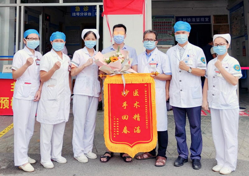 2020年7月9日,因急性心肌梗死并三次心脏骤停周先生出院后送来锦旗致谢