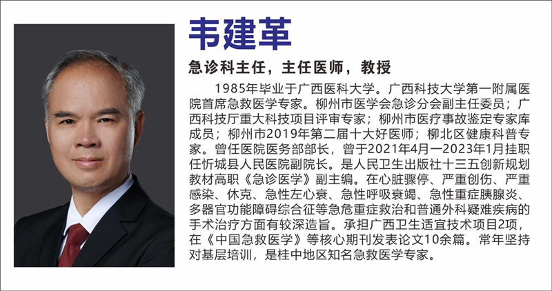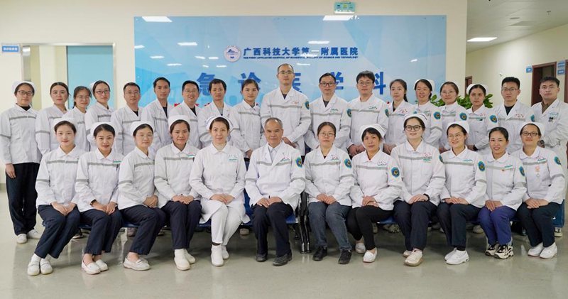 急诊科团队在韦建革主任的带领下,每一位医护成员无论是学术水平和技能方面均得到显著提升,敢于随时与死神作战,他们不愧于柳州日报多年前写下的“生命的守护神”的称号。(急诊科韦建革)