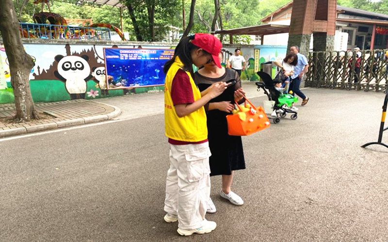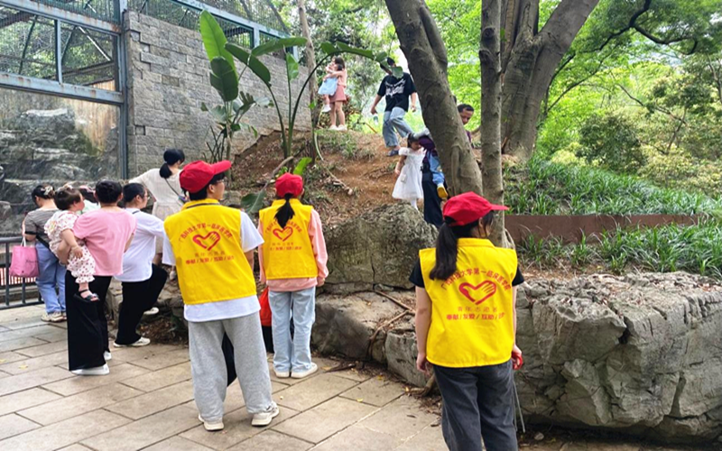 活动开始前,青志协将志愿者分组,开展定点服务和巡逻服务,“动”“静”结合为游客服务。例如由于“广西三月三”节日期间动物园的人流量大,在活动过程中,有几个小朋友与家长走失。青年志愿者协会在游客服务中心的志愿者立即响应、快速行动,将走失小朋友的信息发至志愿服务群,位于动物园各处的志愿者此时串成了一个寻人网络,在各个角落根据信息积极寻找,最后成功地将走丢的小朋友带回游客服务中心与家长汇合。