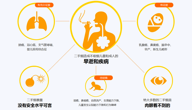 (3)一些与吸烟者共同生活的女性、孩童,其患肺癌的几率要比常人高出6倍。