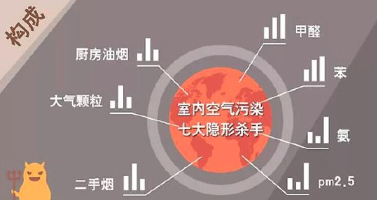 三、室内氡污染:氡是一种放射性物质,广泛的存在于自然界的土壤、岩石、建筑材料中。它是铀、镭经衰变而成的产物。