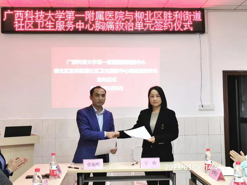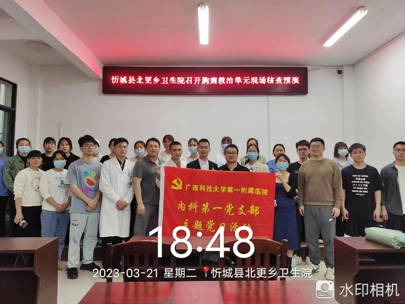 2023年4月7日,中国胸痛中心总部发布《关于中国胸痛中心及中国基层胸痛中心通过认证单位公告》。经过中国胸痛中心执行委员会讨论和投票,由我院技术指导的来宾市忻城县人民医院,顺利通过中国胸痛中心认证,成为国家级胸痛中心。在我院胸痛中心毫无保留的技术指导下,北更乡卫生院、思练镇中心卫生院、新圩乡卫生院、长塘镇卫生院也顺利通过了国家胸痛中心的胸痛救治单元认证工作。我院胸痛中心开枝散叶,可谓成果颇丰!