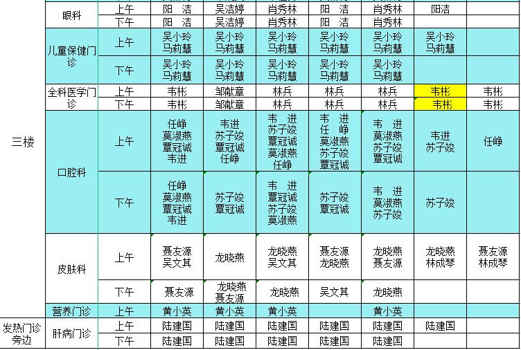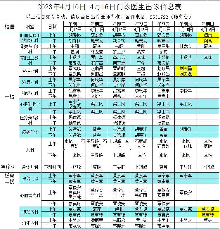 2023年4月10日-4月16日门诊医生出诊信息表