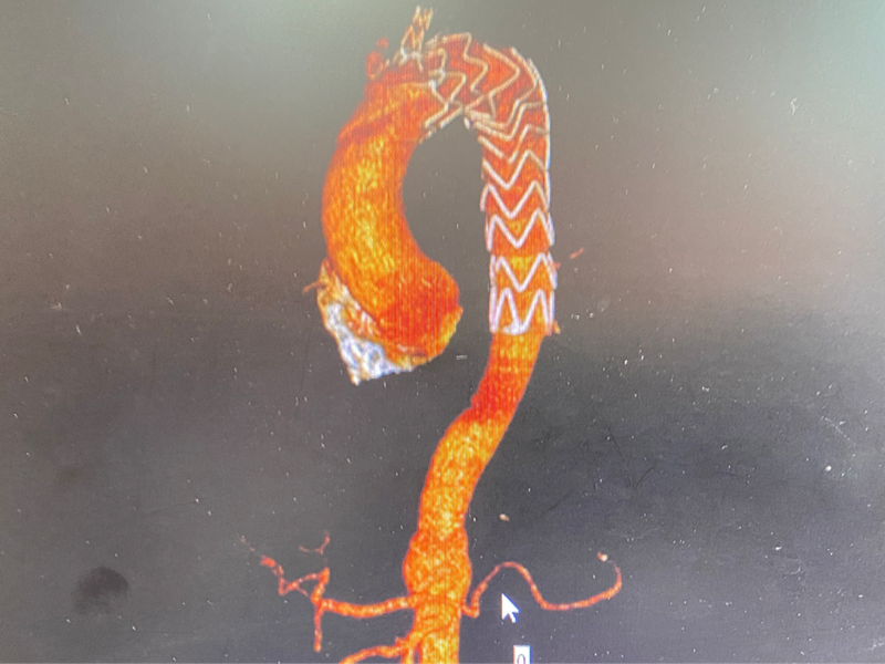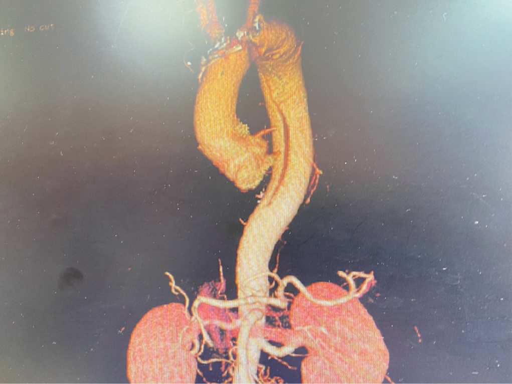 近日,48岁的韦先生无明显诱因下出现胸闷、胸痛情况,持续5-6分钟后缓解,发病后家属立即送我院就诊,入院后接诊医师立即为患者完善相关坚查收住心血管内科。心血管内科行急诊冠脉造影,术中诊断:冠状动脉粥样硬化,术后予营养心肌、护胃、止痛等处理后,韦先生仍诉持续性伴胸闷、胸背、腹部疼痛,偶伴大汗淋漓、烦躁不安,表情痛苦,立即急查胸部CT,经检查韦先生被确诊为凶险的主动脉夹层(Stanford B型),累及左侧锁骨下动脉根部、腹腔干。患者病情凶险,随时可能猝死,立即转入心胸乳腺外科继续治疗。