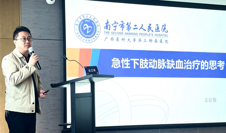 随着我国人民生活方式的改变和人口老龄化的不断加剧,血管疾病发病率逐年增加,其治疗需求也逐步提升。为加强学术交流,分享血管外科前沿知识,分享各类特殊疑难病例讨论,推广新理念、新技术、新器械的使用,聚焦下肢疾病领域的热点问题,如术式选择、技术进展等方面畅谈经验。3月18日下午,广西科技大学第一附属医院心胸乳腺外科成功举办了“【心动】桂人言·柳州站——下肢疾病治疗策略与新器械的使用”学术沙龙会。