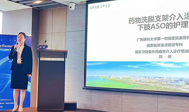 下半场,苏兴旺医生分享了ReewarmPTX药物球囊的应用与体会,详细的分析了应用技巧,合理的应用对疾病能起到积极的作用。黄子平医生分享了破裂性腹主动脉瘤诊治整治体会,为大家生动分享了在治疗破裂性腹主动脉瘤中的有效方法及措施。本次会议,护理也紧跟医疗步伐,学习血管外科专科护理前沿内容,以广西医科大学第一附属医院刘倩护士长讲解药物洗脱支架介入治疗下肢ASO的护理作为此次沙龙的尾声。