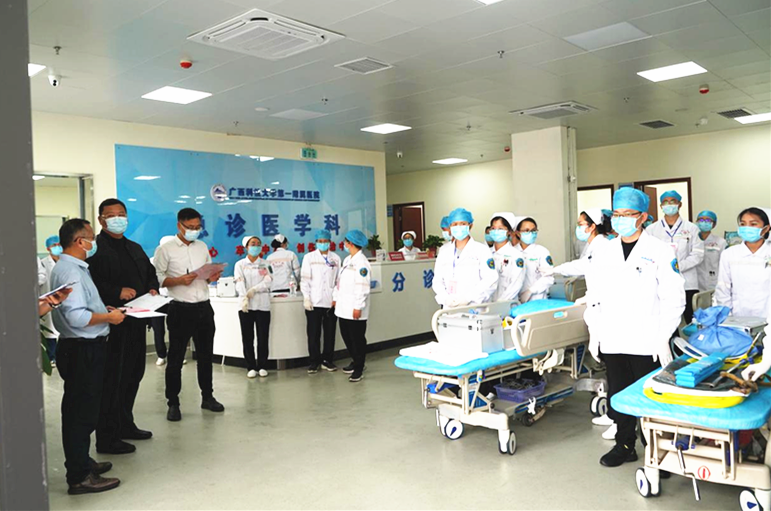 3月21日,由柳州市医疗急救指挥中心等机构单位组成的柳州市Ⅰ级创伤救治中心预审专家组来到广西科技大学第一附属医院(下简称广西科大一附院),对该院的创伤中心创建工作进行预审。广西科大一附院党委书记庞晓红、党委副书记、院长覃天等院领导参加预审,预审会由柳州市医疗急救指挥中心办公室负责人卢燕英主持,柳州市医疗急救指挥中心主任黄卓毅对本次预审进行总结。