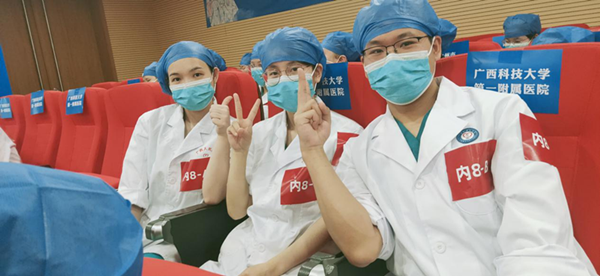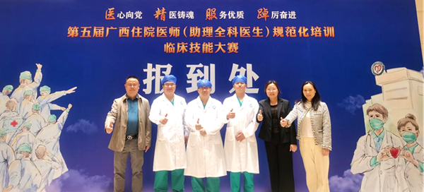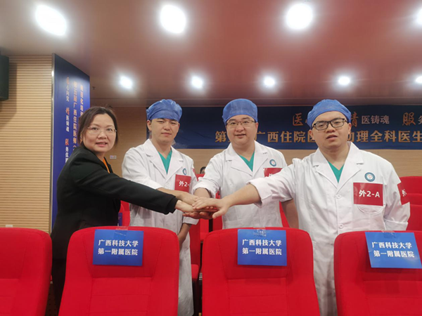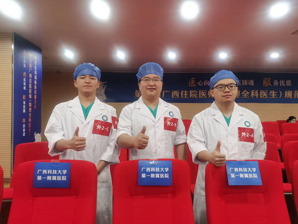 广西科技大学第一附属医院党政领导班子高度重视,大力支持和鼓励学员积极参赛,分别派出外科组、内科组、全科组三支队伍参加比赛。希望通过比赛,磨炼意志,锻炼技能,以赛促学、以赛促进。同时希望通过比赛,以赛促教,以赛促建,推动我院住培工作的稳步发展。参赛队伍在医院副院长闭雄杰的带领下,3月2日如约而至。
