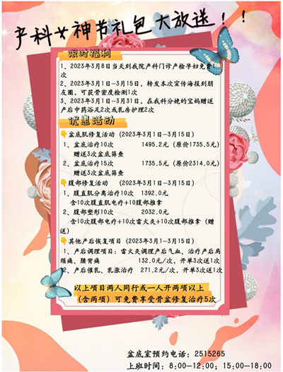 广西科技大学第一附属医院产科在女神节开展如下优惠活动,盆底治疗室欢迎大家的到来!