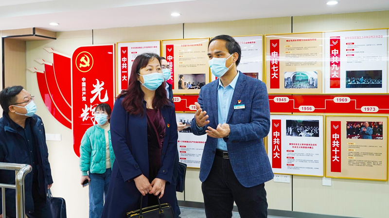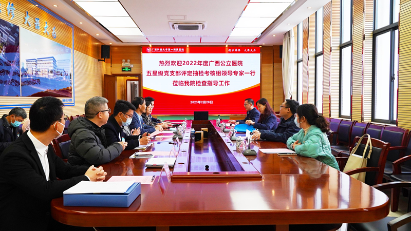 根据《广西公立医院星级党支部评定工作方案》等工作布置及要求,2月28日上午,以自治区卫生健康委直属机关党委二级调研员吕丹为组长的评定考核专家组一行四人,到广西科技大学第一附属医院开展广西公立医院五星级党支部评定检查工作。广西科技大学党委组织部副部长宋海霞、广西科大一附院党委书记庞晓红、副书记何曲波、纪委书记潘旭以及医院相关部门、党支部的工作人员陪同检查。