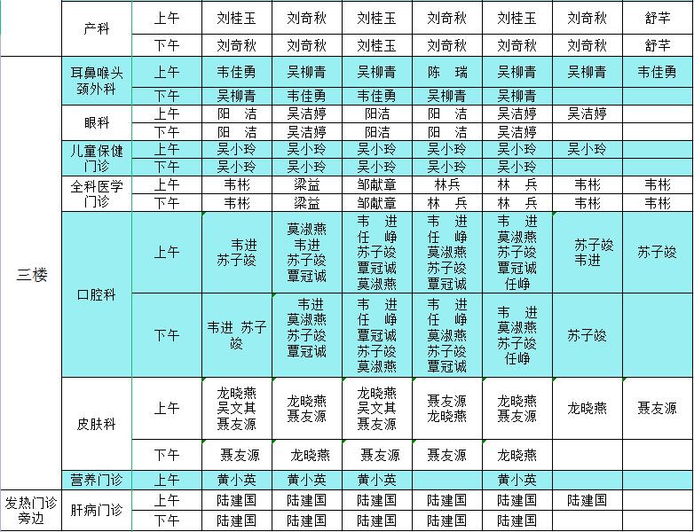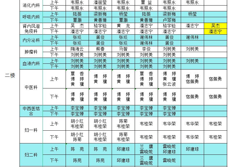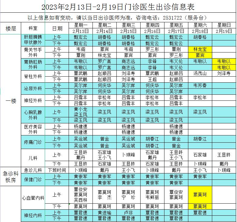 2023年2月13日-2月19日门诊医生出诊信息表