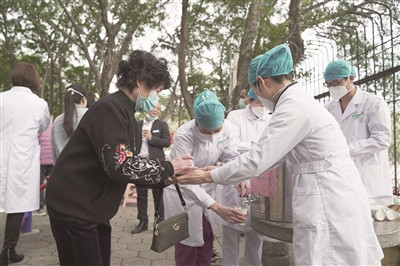 广西科大一附院医护人员为广西科大职工及家属送来预防新冠中药汤剂