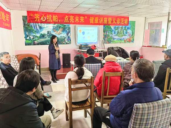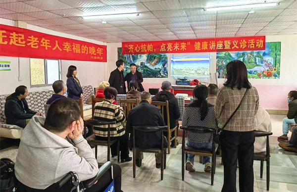 为提高老年朋友对“帕金森”病的认识,普及相关医学知识,广西科技大学第一附属医院院长助理兼神经内科主任黄进瑜带领帕金森诊治中心,到河池市宜州区城北玻璃钢厂爱心养老院开展以“齐心抗帕,点亮未来”为主题的健康讲座暨义诊活动。
