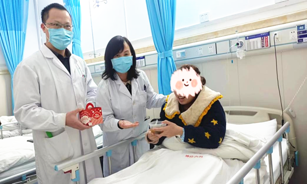 年仅27岁的小兰在春节期间突发右侧肢体无力,右手不能抬起、不能行走,只能瘫痪在床,吃喝拉撒都靠家人照顾。我院脑卒中团队接诊后迅速判断小兰是患上急性脑梗死,然而小兰这样的妙龄女子又怎会患上常见于老年人的疾病呢?我院脑卒中团队通过全面严谨的排查,发现小兰在发病前有发热、多日进食极少、低血压病史,最终明确是低血容量导致的急性脑梗死。针对小兰病情的特殊性,除了常规的脑梗死治疗之外,还立即给予补充血容量,维持血压平稳等处理,经过精心的治疗,小兰肢体瘫痪症状得到了极大地改善,在元宵节这天用自己的双手稳稳地接住了黄进瑜主任为她送上的汤圆。