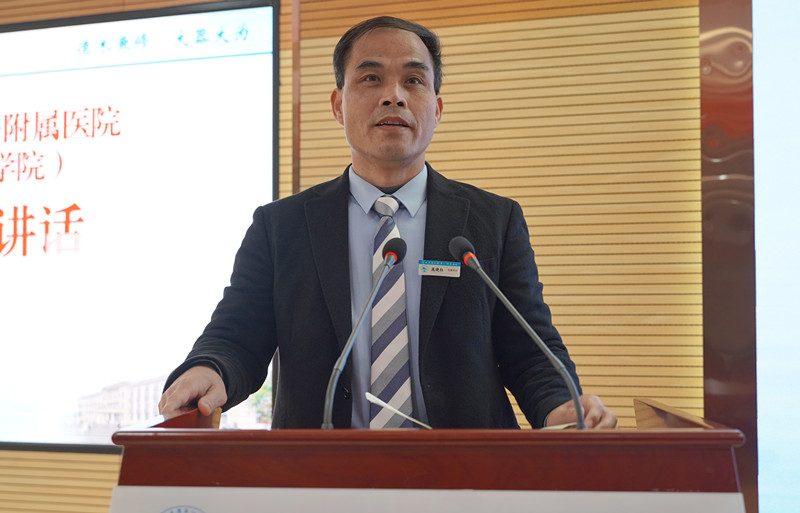 庞晓红结合医院踔厉奋发有为及新形势下的新机遇、新挑战发表讲话。他首先代表医院(学院)党委对全体干部职工在2022年的努力拼搏、扎实工作、自我提升予以点赞,并对医院(学院)2022的工作及2023年的任务表示同意。庞晓红表示,回顾2022年,医院(学院)党委要对全院每一位同仁表达三个感谢:一是感谢矢志不渝和同心护航的勇气;二是感谢身先士卒和以院为家的精神;三是感谢直面难题和实干创业的行动。他强调,在全院上下同心努力拼搏下,过去一年大家解决了许多过去想解决而没有解决得问题,办成了许多过去想办而没有办成的大事,在全面贯彻落实党的二十大精神开局之年,弘扬了历史主动精神,站稳了中国式现代化人民立场。
