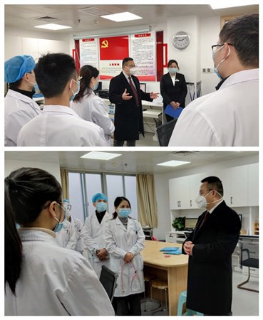 在每个科室,副院长闭雄杰都关切询问大家的工作情况和身体状况,感谢大家服从医院工作的安排。大家在疫情政策调整以后,积极响应中国医师协会《致全国住培基地和住院医师的倡议书》,不惧风险、不怕困难,勇挑重担,始终坚守在抗疫最前线,长时间高强度、超负荷工作,以医者仁心、精湛医术护佑每一个生命的精神令人感动。相信大家在这次疫情救治实践中磨练意志、修炼品行,增长了本领,在以后的医疗救治工作中会更得心应手。他叮嘱大家保重身体,有不舒服的情况及时说出来,只有大家的身体好了,才能救治更多的病人,更好的守护人民健康。同时闭雄杰副院长还叮嘱学员轮转在科室,春节期间合理安排学员轮流休息,多关心关爱学员,尽量满足学员的需求。
