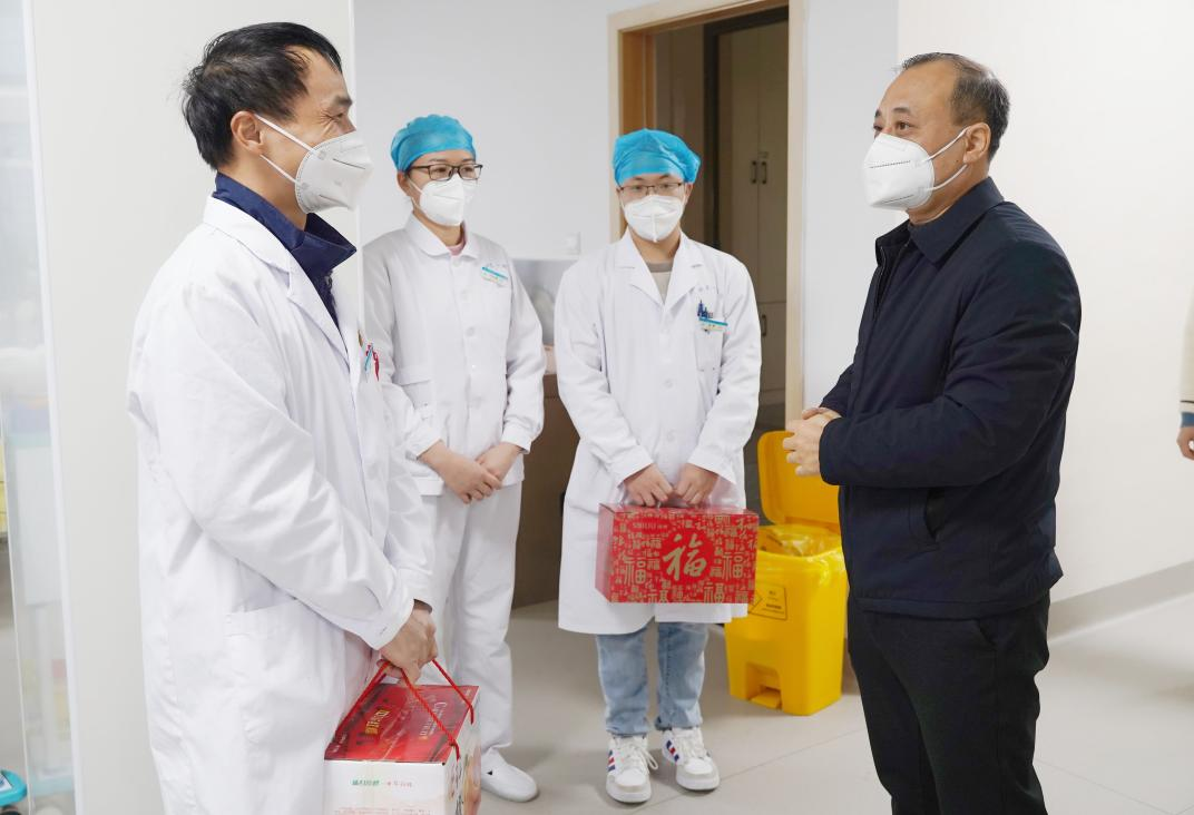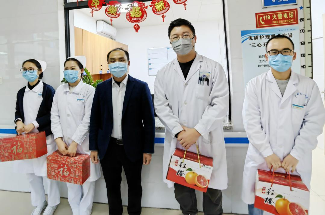 1月22日,正值兔年农历年初一,传统习俗上大年初一是拜大年、送祝福的吉祥日子。医院全体领导班子成员,分成8个组,分赴各临床医技科室,给大年初一还在岗位上坚守的医护人员送上了新春慰问礼品并给他们送来新年问候,感谢他们在新春佳节还坚守在岗位上,为医院的发展奉献力量,并祝福广大职工和职工家属新春快乐、身体健康!