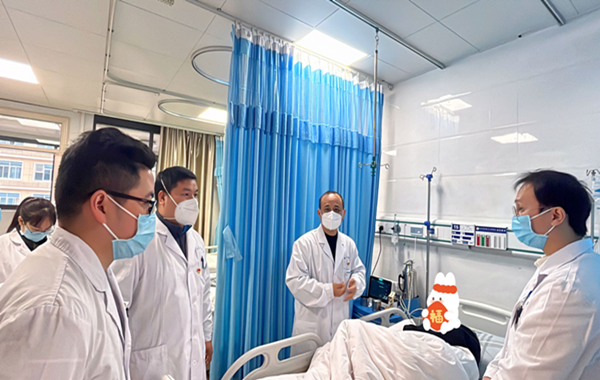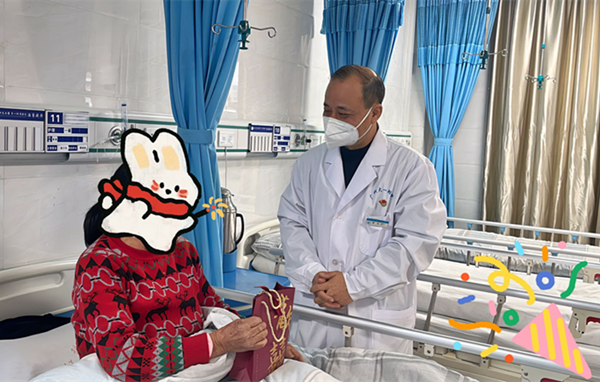 病房里,覃天院长向患者们送上春节祝福。“给大家拜年啦,祝大家早日康复”“新春快乐,2023年收获健康和幸福!”一句句美好的祝福,温暖了每个人的心房。每到一个病房,院长都会耐心地询问患者的就诊情况和病情,嘱咐值班医护人员更要细心照料,并将福袋送到每一位患者手中,鼓励他们积极治疗,安心养病。