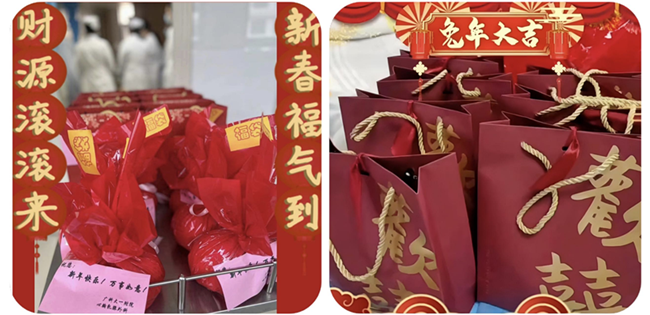 礼物虽小,却代表了科室全体医护人员对患者的祝福,祝愿所有患者在2023年,欢愉且胜意,万事皆可期,身体健康,开心常乐!春节的爱心关怀只是科室文化的一个缩影,心胸乳腺外科将会把爱一直延续下去,让每一位患者感受到这个大家庭的温暖。