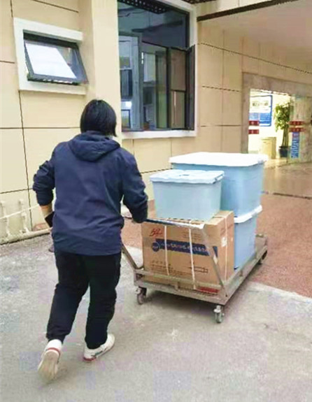 为充分保障耗材的供应,耗材管理科每天都对紧缺的救治耗材进行评估,实时分配安排到科室,优先保障发热门诊、急诊和重症监护室的需求。SPD工作人员实行假期无休,每天常规送货到21点。ICU病人激增且病情复杂、进展快,血气测定试剂盒、气管插管、氧气面罩等需求实时变化,耗材管理科安排SPD专人配送ICU抢救物资。全国缺货的氧气面罩物流才到柳州,不等物流配送就火速赶往物流货运站点抢运氧气面罩。忙到22点才回到家的仓库工作人员胡锦玉顾不上吃饭,又马上折返回院进行接收并第一时间配送到临床科室,解决抢救工作燃眉之急。