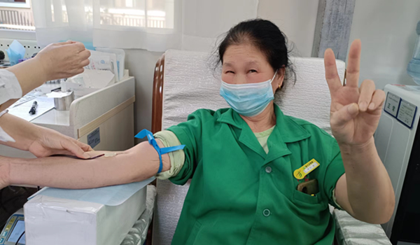这两天参加献血的职工还有很多,以及部分病人家属也参与到无偿献血中来。他(她)们都是在平凡的岗位上兢兢业业的奋斗者,也是多次无偿献血者。朱旭生医生说:他坚持献血好多年了,献血有益身体健康,加上平时注意加强锻炼身体,到目前他没有变成“小阳人”,他还笑称:自己是“天选打工人”。梁玉萍阿姨,她曾献血多次,年龄已经超过55岁了,她主动要求再次献血,她表示:要一直献血到60岁。
